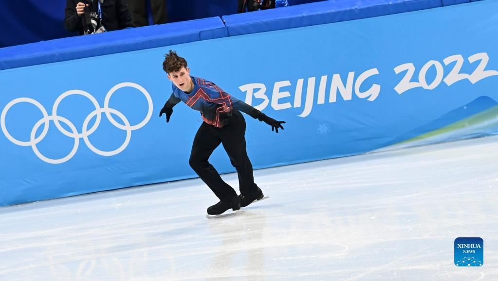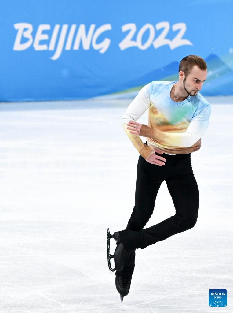 Adam Siao Him Fa of France performs during the figure skating men single skating free skating at Capital Indoor Stadium in Beijing, capital of China, Feb. 10, 2022. (Xinhua/Zhang Yuwei)