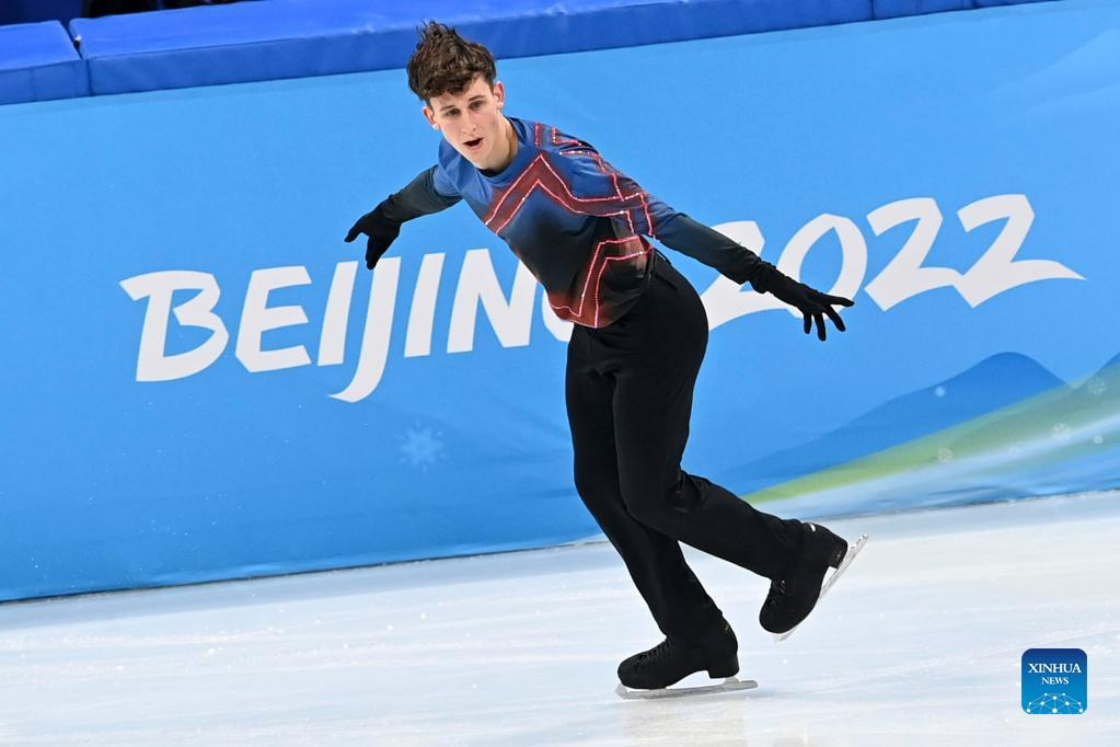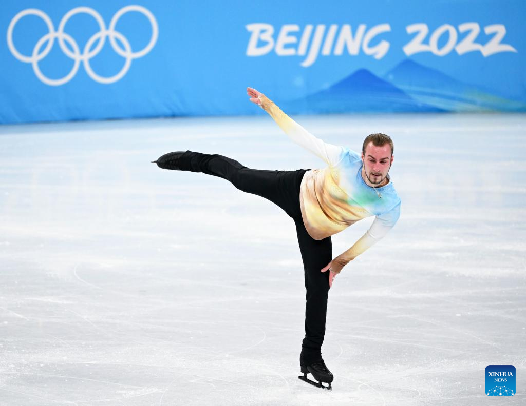 Daniel Grassl of Italy performs during the figure skating men single skating free skating at Capital Indoor Stadium in Beijing, capital of China, Feb. 10, 2022. (Xinhua/Lan Hongguang)