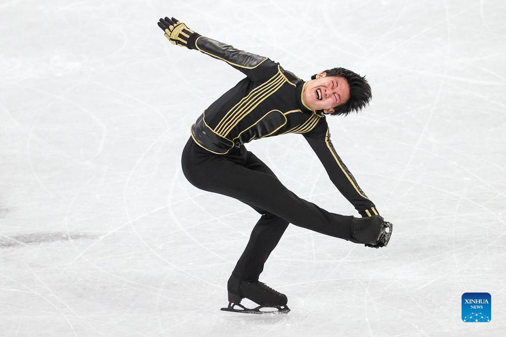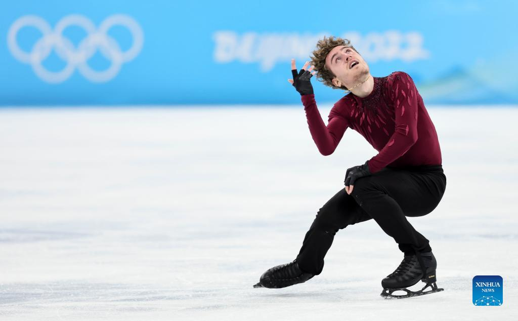 Adam Siao Him Fa of France performs during the figure skating men single skating free skating at Capital Indoor Stadium in Beijing, capital of China, Feb. 10, 2022. (Xinhua/Lan Hongguang)