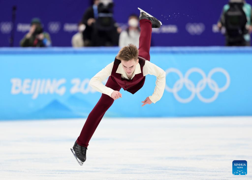 Andrei Mozalev of ROC performs during the figure skating men single skating free skating match of Beijing 2022 Winter Olympics at Capital Indoor Stadium in Beijing, capital of China, Feb. 10, 2022. (Xinhua/Ma Ning)