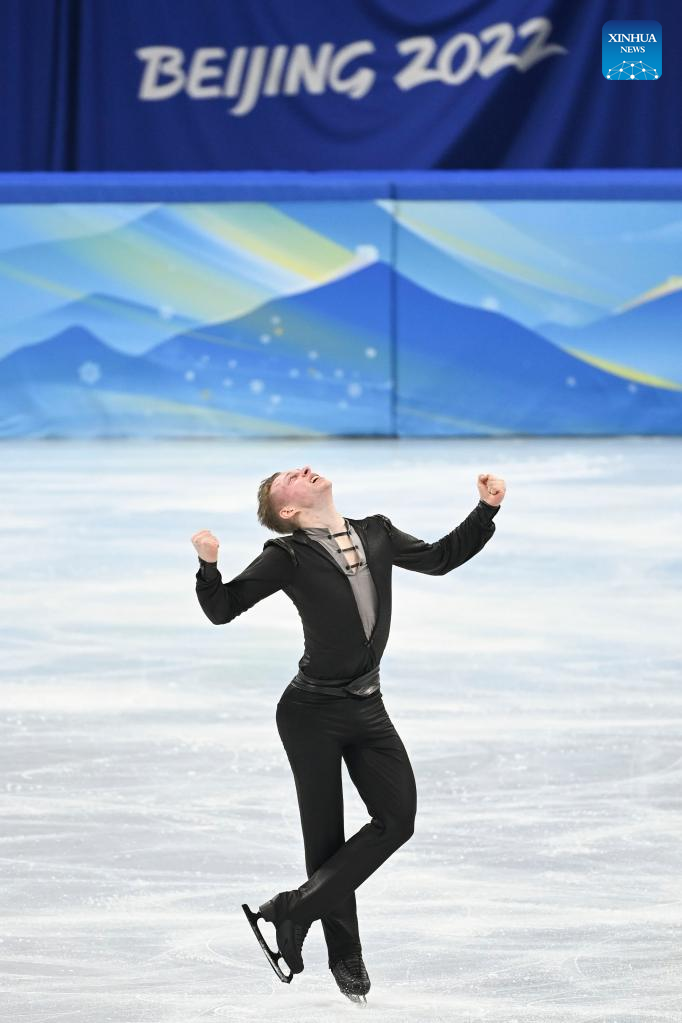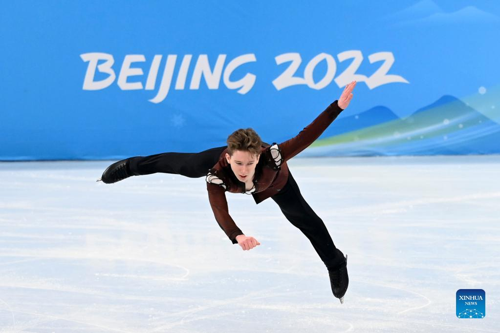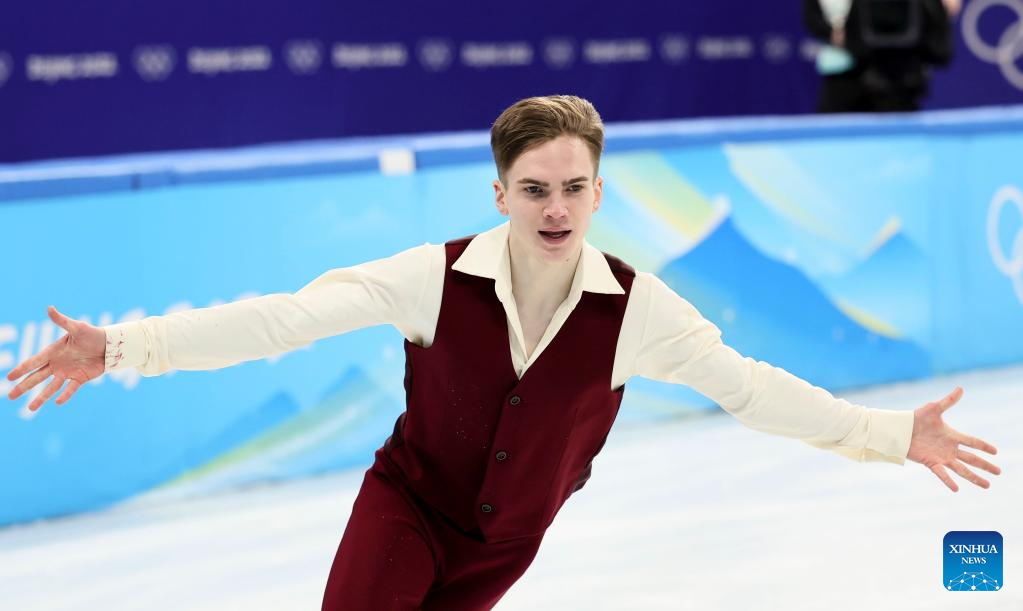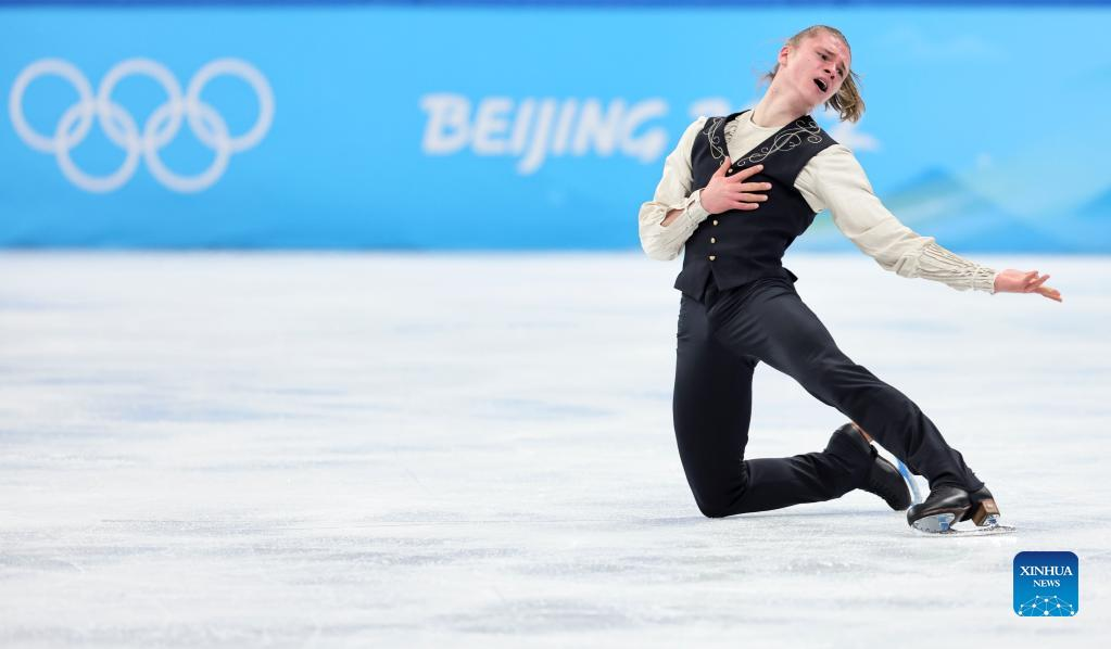 Nikolaj Majorov of Sweden performs during the figure skating men single skating free skating at Capital Indoor Stadium in Beijing, capital of China, Feb. 10, 2022. (Xinhua/Ma Ning)