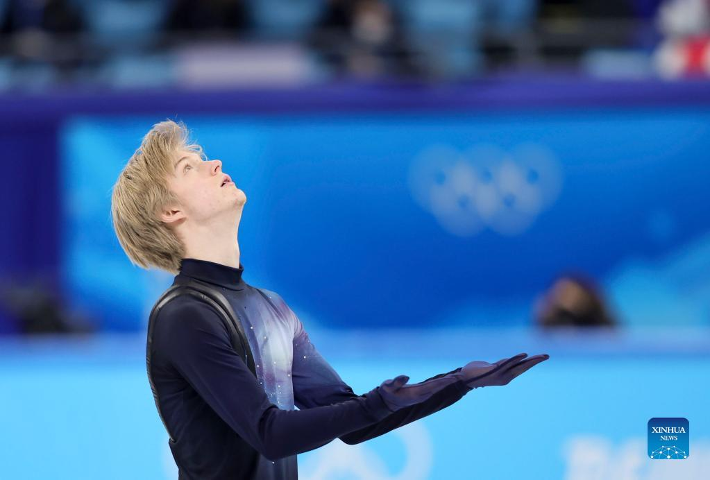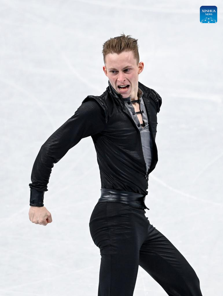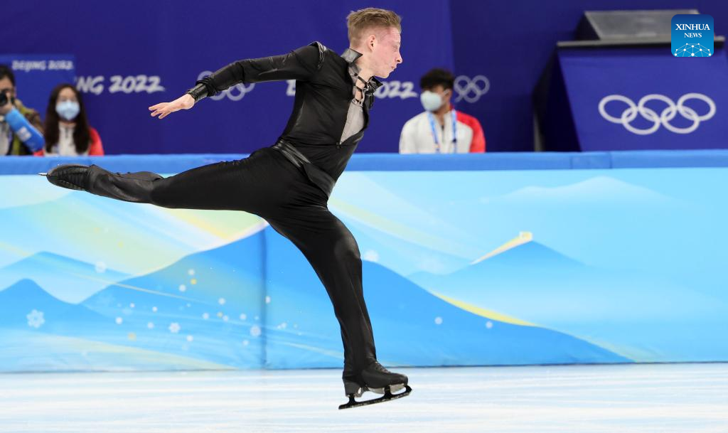 Nikolaj Majorov of Sweden performs during the figure skating men single skating free skating at Capital Indoor Stadium in Beijing, capital of China, Feb. 10, 2022. (Xinhua/Huang Zongzhi)