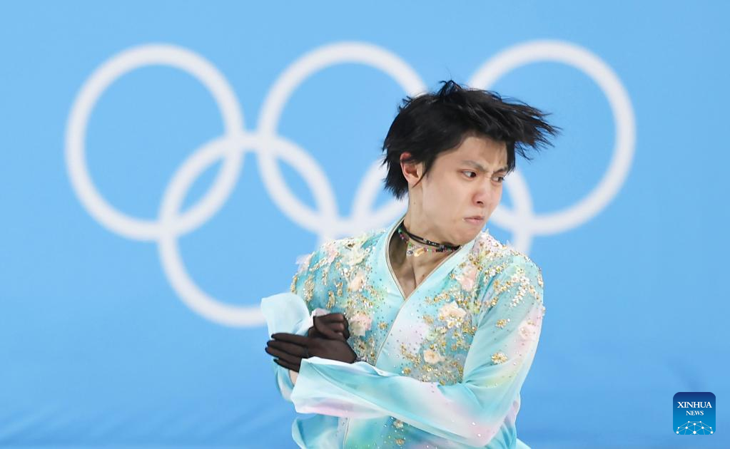 Hanyu Yuzuru of Japan performs during the figure skating men single skating free skating of the Beijing 2022 Winter Olympics at Capital Indoor Stadium in Beijing, capital of China, Feb. 10, 2022. (Xinhua/Huang Zongzhi)