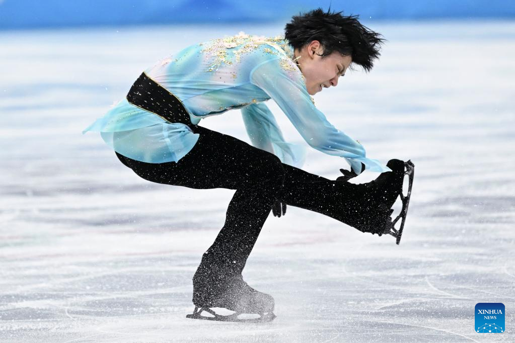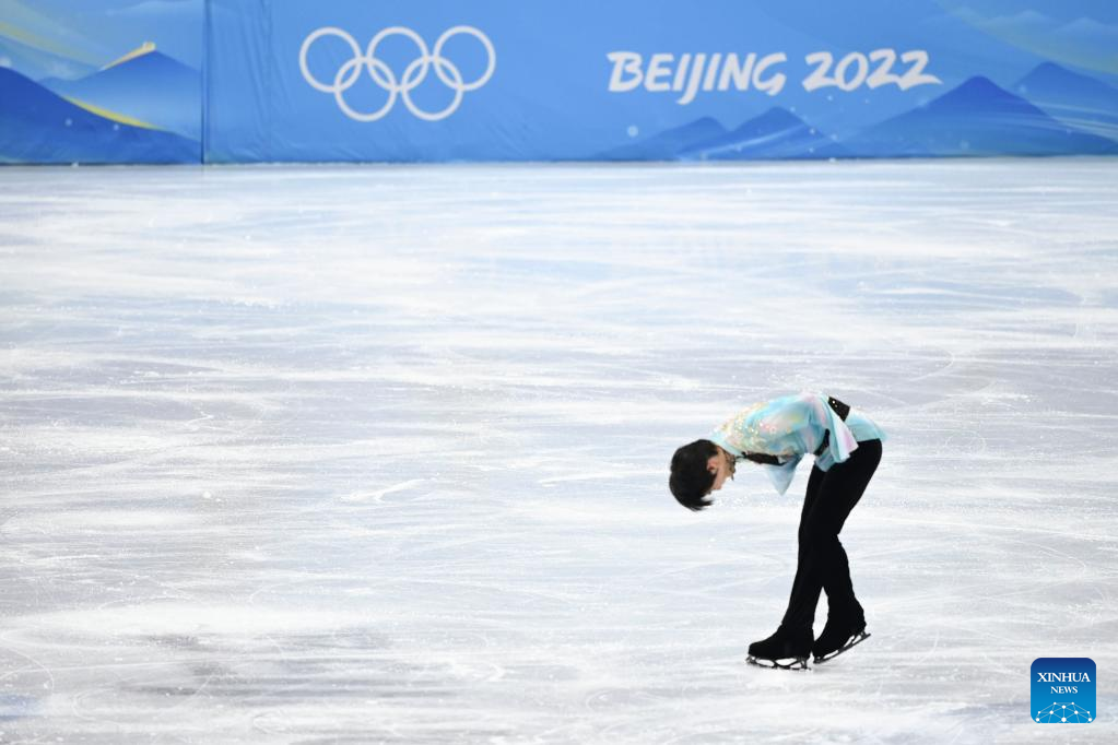 BEIJING, Feb. 10 (Xinhua) -- Two-time defending Olympic champion Yuzuru Hanyu of Japan failed to make the podium after falls on his quadruple Axel attempt, while U.S. world champion Nathan Chen claimed the men's singles title at the Beijing Winter Olympics figure skating event on Thursday.