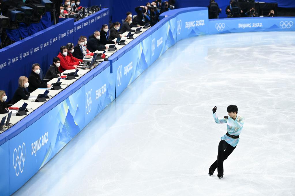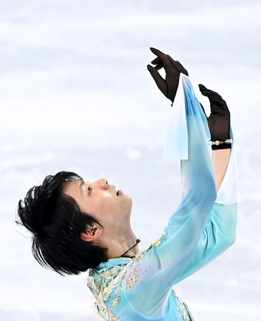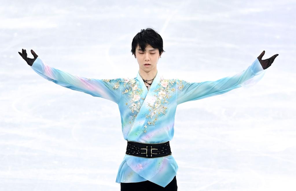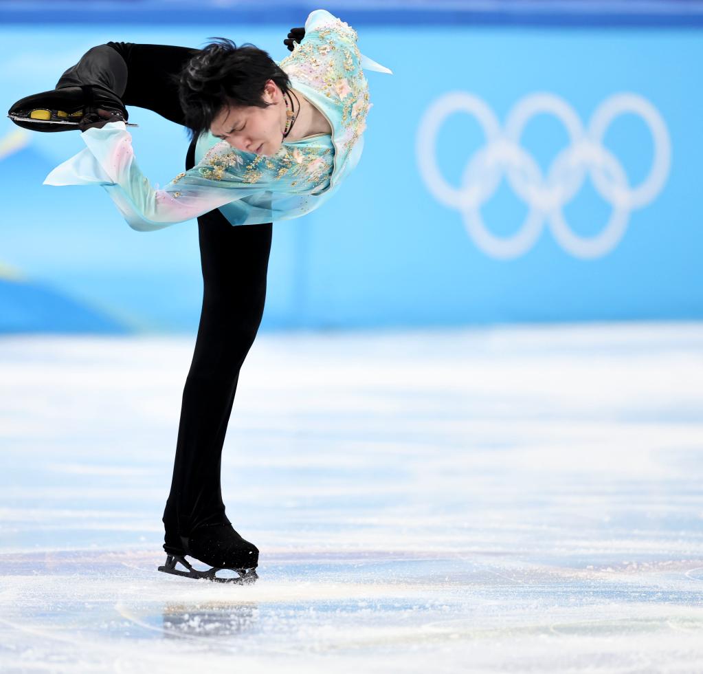 Hanyu Yuzuru of Japan performs during the figure skating men's singles skating free skating of the Beijing 2022 Winter Olympics at Capital Indoor Stadium in Beijing, capital of China, Feb. 10, 2022. (Xinhua/Huang Zongzhi)