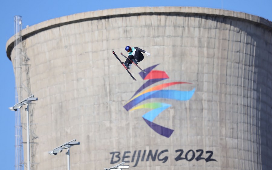 BEIJING, Feb. 10 (Xinhua) -- Against the striking backdrop of enormous cooling towers, Olympic skiers launch themselves in the air with awe-inspiring twists and flips.