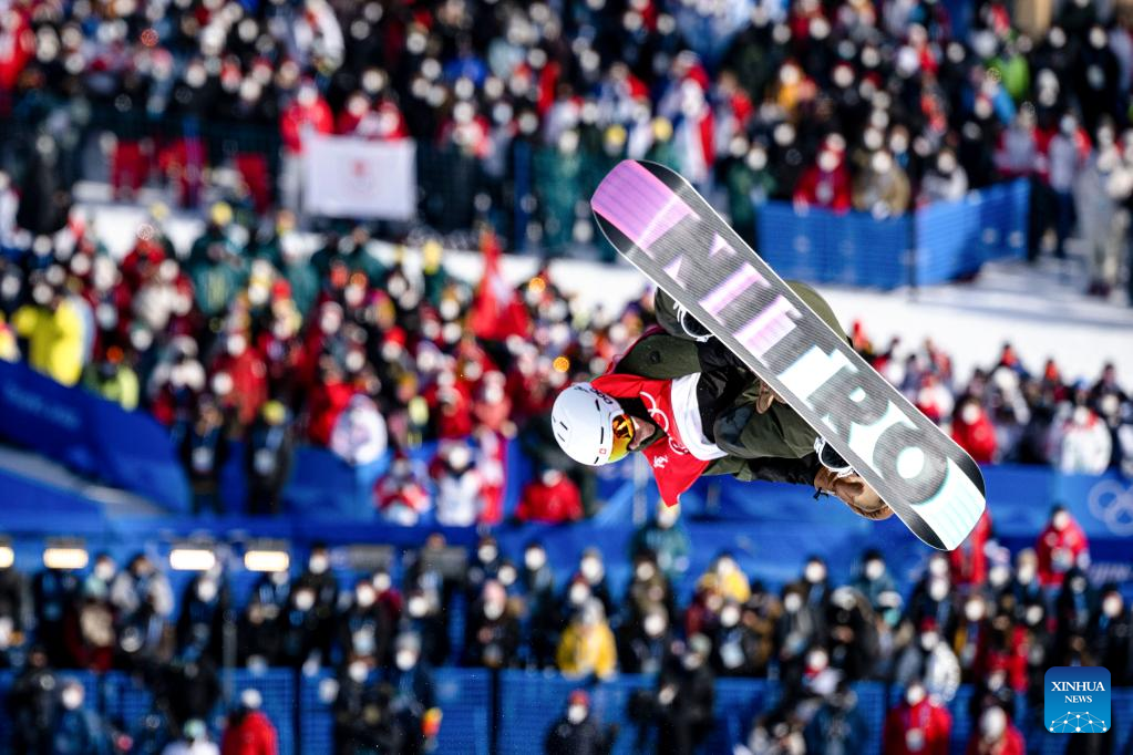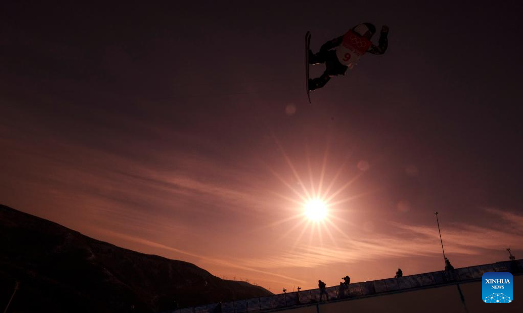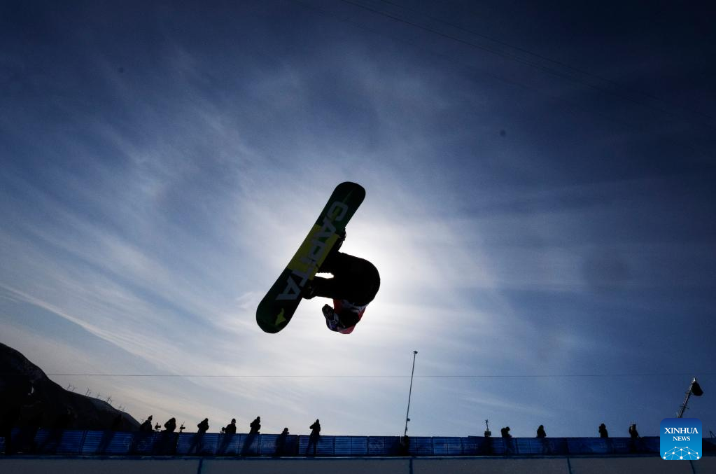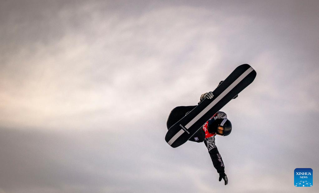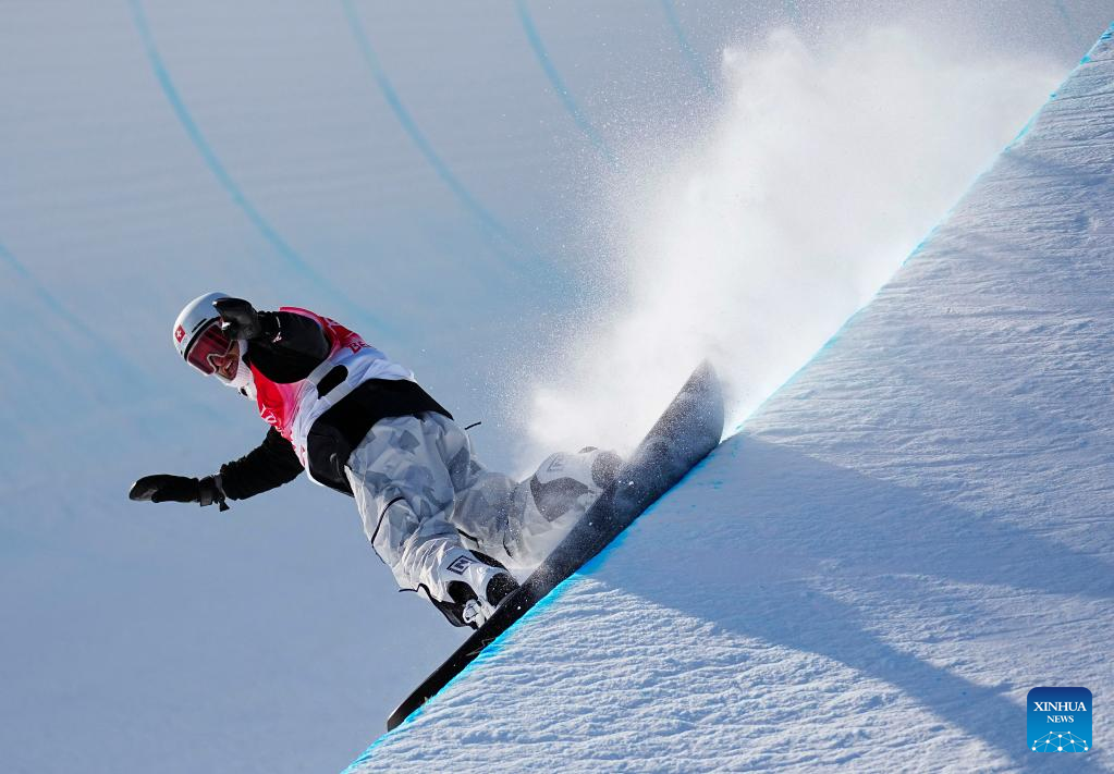 Jan Scherrer of Switzerland competes during men's snowboard halfpipe final of Beijing 2022 Winter Olympics at Genting Snow Park in Zhangjiakou, north China's Hebei Province, Feb. 11, 2022. (Xinhua/Xiao Yijiu)