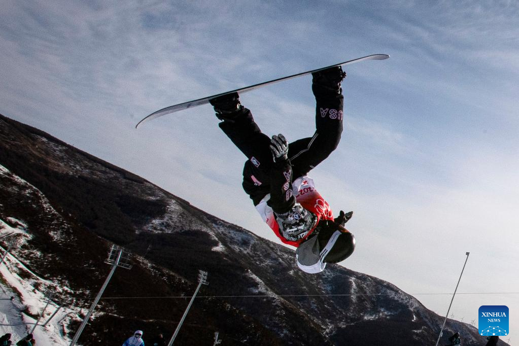 Shaun White of the United States competes during the men's snowboard halfpipe final at Genting Snow Park in Zhangjiakou, north China's Hebei Province, Feb. 11, 2022. (Xinhua/Xiao Yijiu)