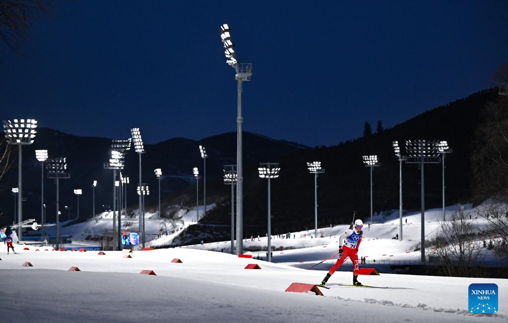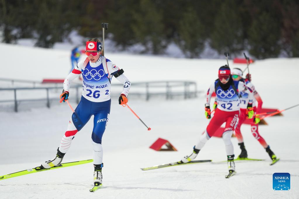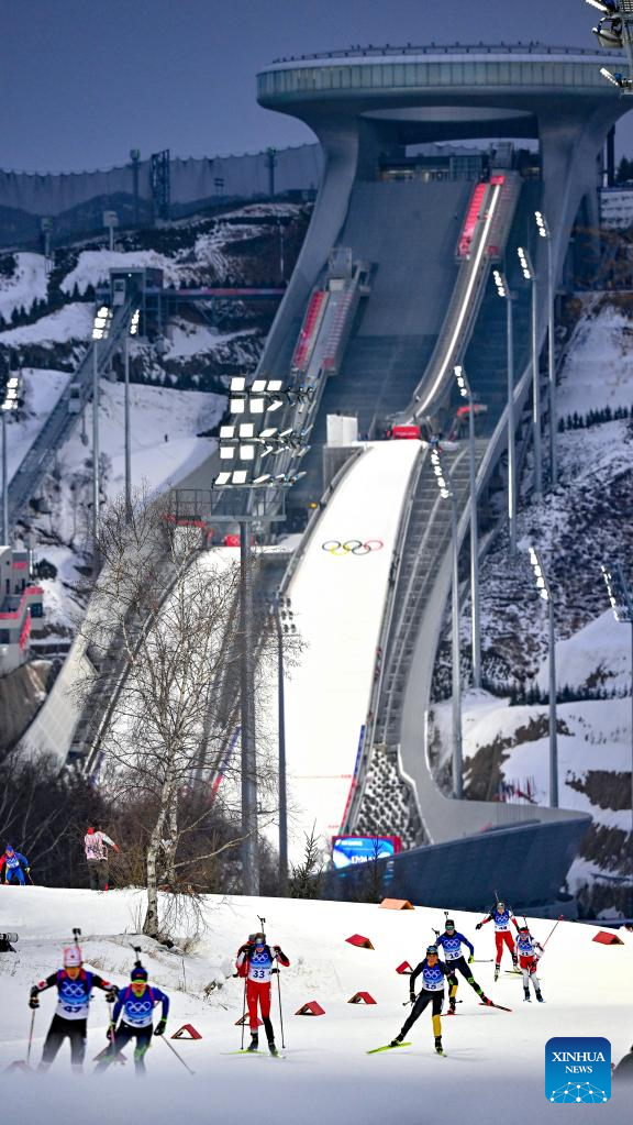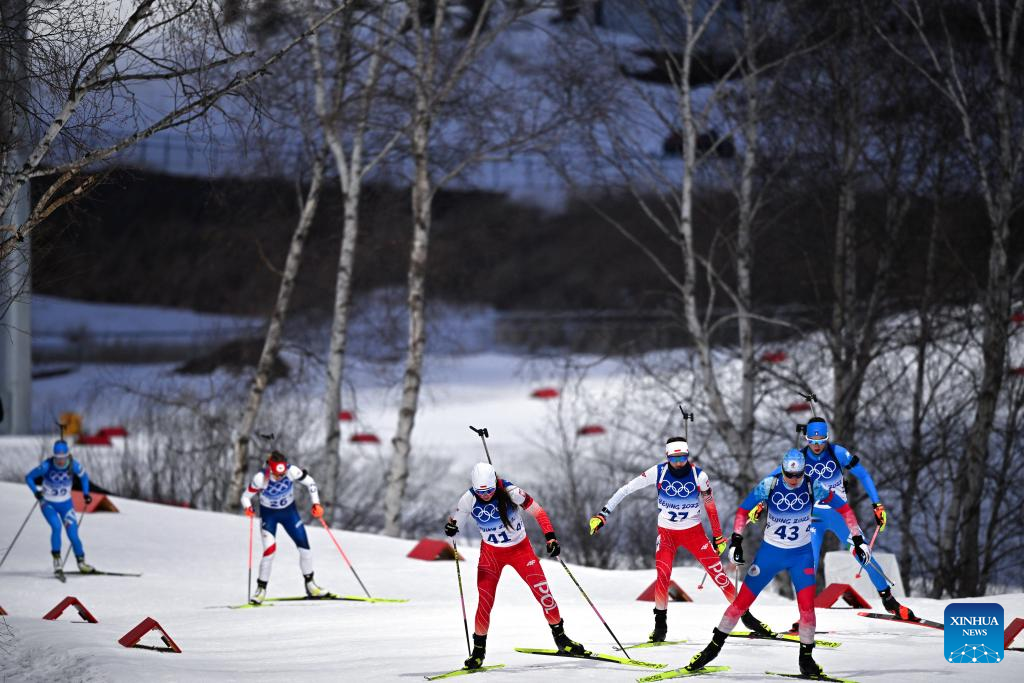 Athletes compete during biathlon women's 7.5km sprint at National Biathlon Centre in Zhangjiakou, north China's Hebei Province, Feb. 11, 2022. (Xinhua/Guo Cheng)