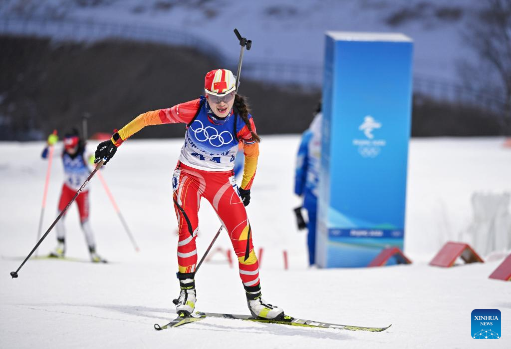 Chu Yuanmeng of China competes during biathlon women's 7.5km sprint at National Biathlon Centre in Zhangjiakou, north China's Hebei Province, Feb. 11, 2022. (Xinhua/Ding Ting)