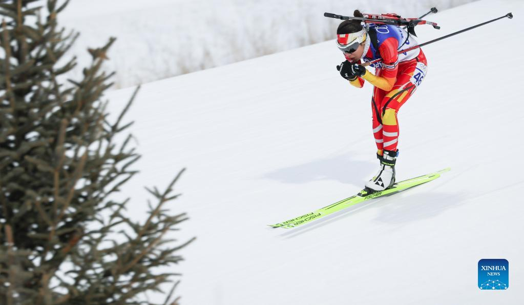 Tang Jialin of China competes during biathlon women's 7.5km sprint at National Biathlon Centre in Zhangjiakou, north China's Hebei Province, Feb. 11, 2022. (Xinhua/Guo Cheng)