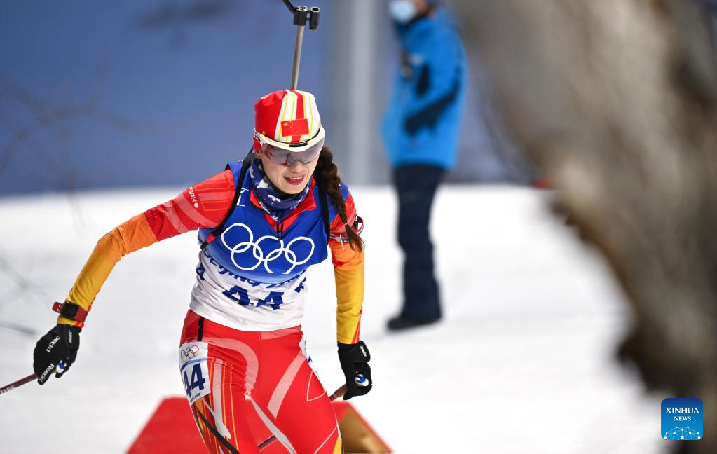 Chu Yuanmeng of China competes during biathlon women's 7.5km sprint at National Biathlon Centre in Zhangjiakou, north China's Hebei Province, Feb. 11, 2022. (Xinhua/Peng Ziyang)