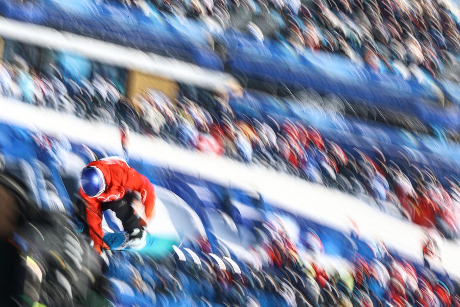 Queralt Castellet of Spain competes during the women's snowboard halfpipe final at Genting Snow Park in Zhangjiakou, north China's Hebei Province, Feb. 10, 2022. (Xinhua/Wu Zhuang)