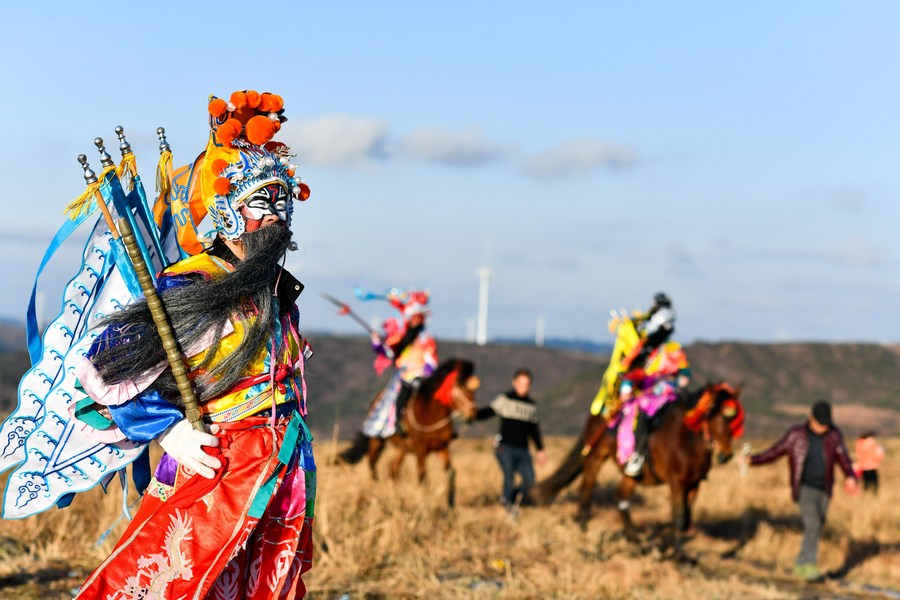 Members of an amateur opera troupe practice Taiping Huadengxi in Longli County, Qiannan Buyi and Miao Autonomous Prefecture, southwest China's Guizhou Province, Feb. 7, 2022. The traditional opera Taiping Huadengxi of Longli County was listed as an intangible cultural heritage of Guizhou Province in 2019. (Xinhua/Yang Wenbin)