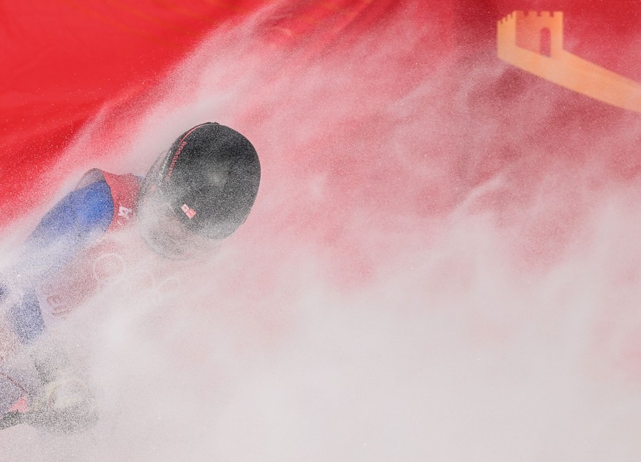 Yan Wengang of China competes during men's skeleton at the Yanqing National Sliding Centre in Yanqing District of Beijing, capital of China, Feb. 10, 2022. (Xinhua/He Changshan)