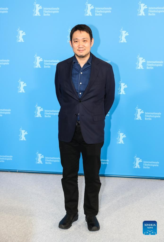 Member of the Berlinale 2022 international jury Hamaguchi Ryusuke attends a photocall during the Berlin International Film Festival in Berlin, capital of Germany, Feb. 10, 2022. The 72nd Berlin International Film Festival, also known as the Berlinale, is scheduled to kick off on Feb. 10 and last until Feb. 20. (Xinhua/Shan Yuqi)