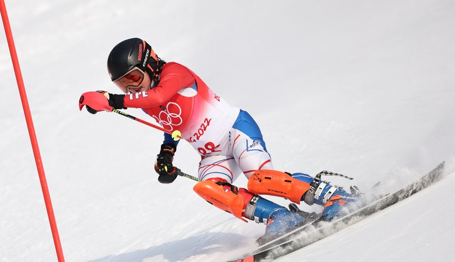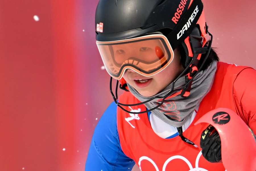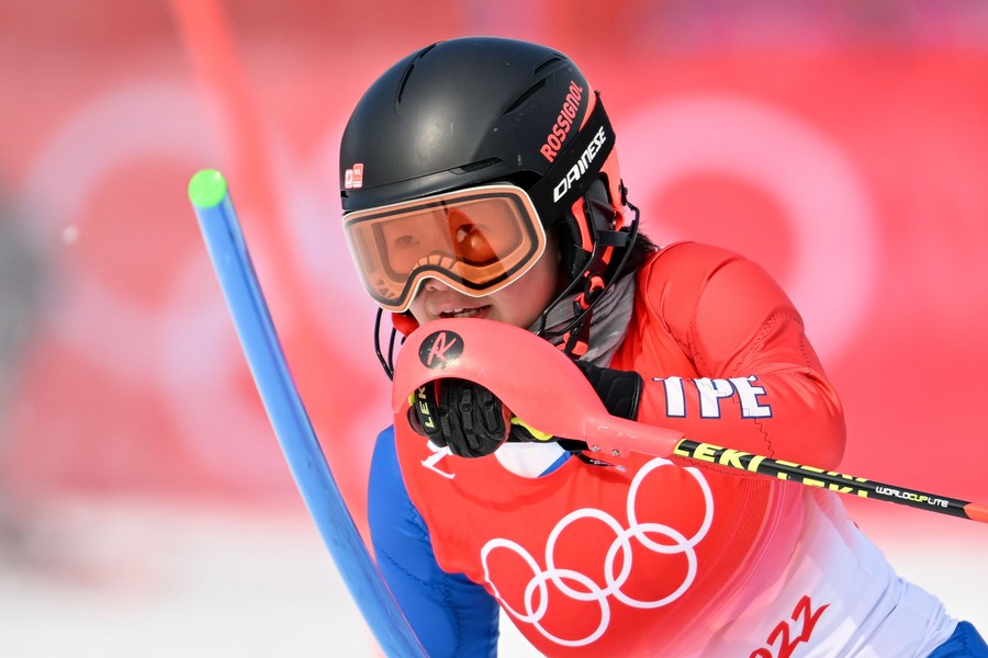 Lee Wen-Yi of Chinese Taipei competes during Alpine skiing women's slalom at the National Alpine Skiing Center in Yanqing District, Beijing on Feb. 9, 2022. (Xinhua/Chen Bin)