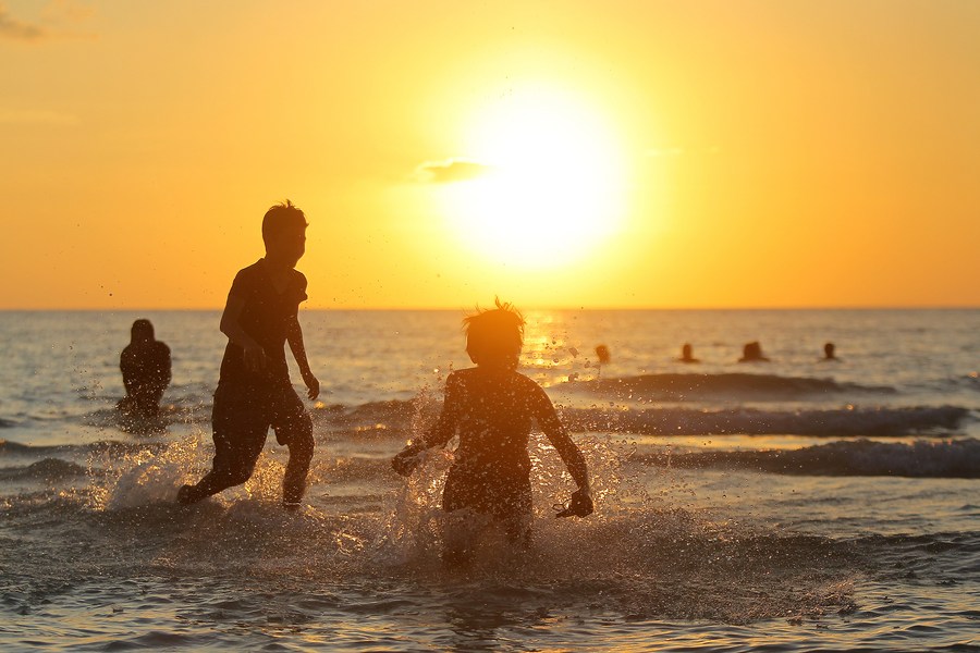 Tourists and residents enjoy playing in the water during sunset on Boracay Island, the Philippines, Oct. 26, 2018. (Xinhua/Rouelle Umali)