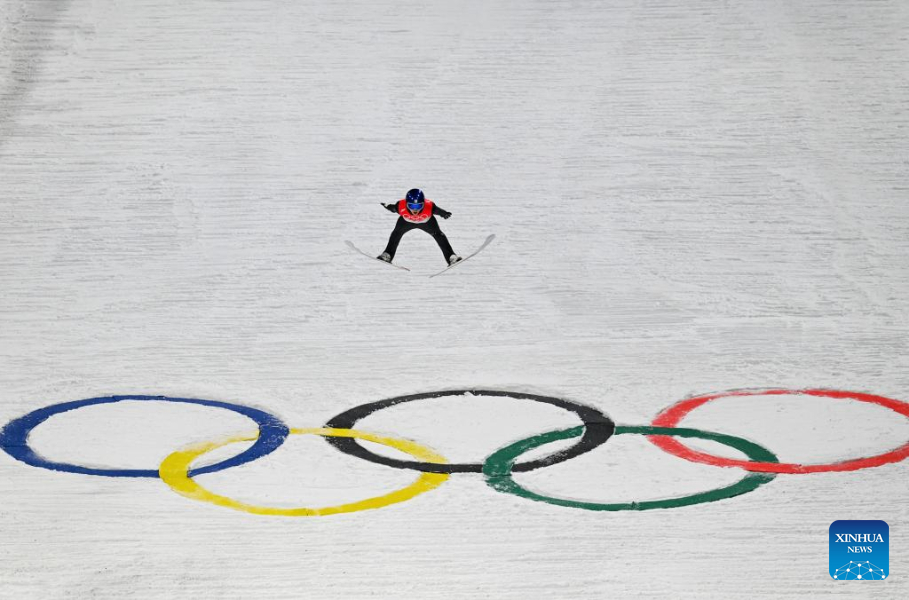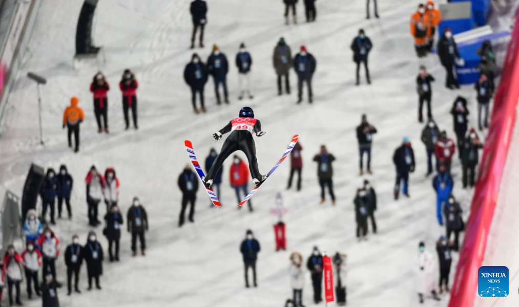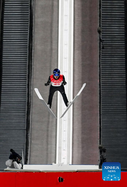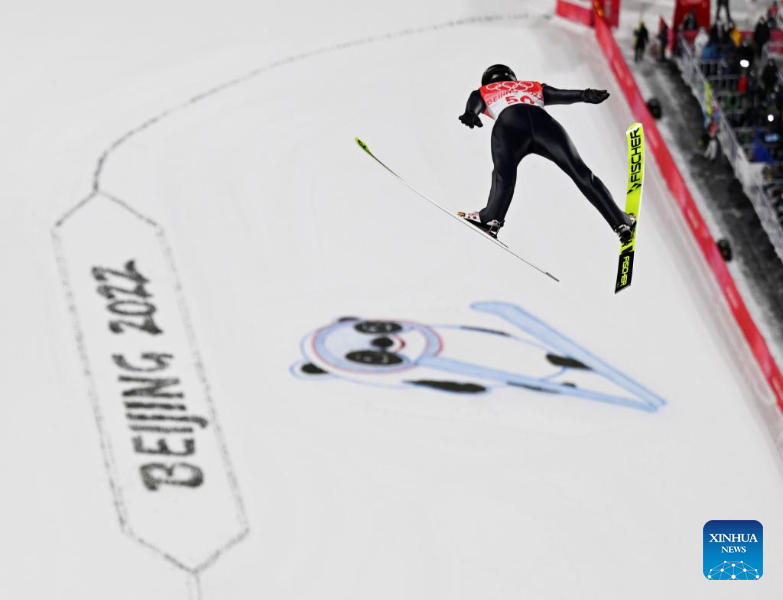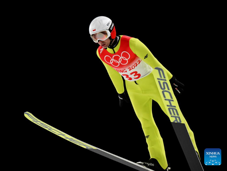 Kamil Stoch of Poland competes during ski jumping men's large hill individual at the National Ski Jumping Centre in Zhangjiakou, north China's Hebei Province, Feb. 12, 2022. (Xinhua/Dai Tianfang)