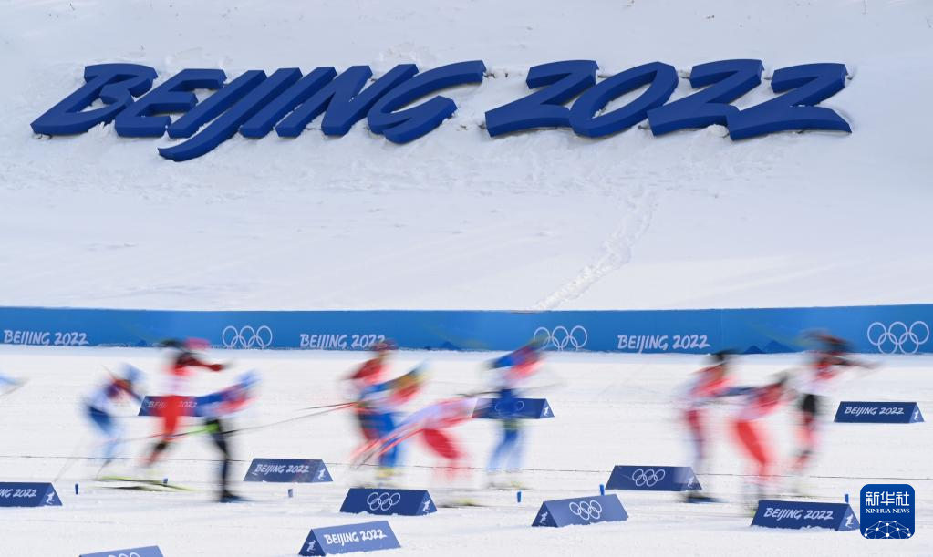Athletes compete during the cross-country skiing women's 4x5 km relay of the Beijing Winter Olympics at National Cross-Country Skiing Centre in Zhangjiakou, north China's Hebei Province, Feb. 12, 2022. (Xinhua/Hu Huhu)