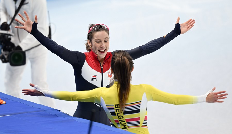 BEIJING, Feb. 12 (Xinhua) -- Defending Olympic champion Suzanne Schulting of the Netherlands clinched the women's 1,000 meter title in one minute and 28.391 seconds in the Capital Indoor Stadium at the Beijing Winter Olympics here on Friday.