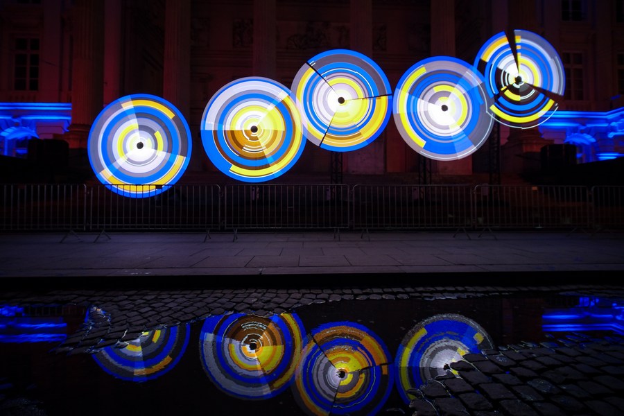 Photo taken on Feb. 11, 2022 shows artistic light installations during the Bright Brussels Festival in Brussels, capital of Belgium. (Xinhua/Zhang Cheng)
