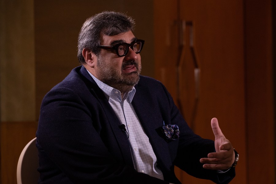 Yiannis Exarchos, CEO of Olympic Broadcasting Services (OBS), speaks during an interview in Beijing on Feb. 21, 2019. (Xinhua/Xu Zijian)