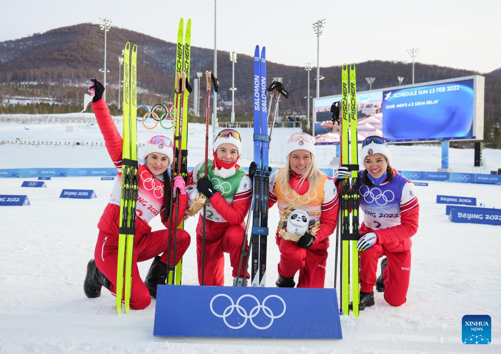 CHONGLI, Zhangjiakou, Feb. 12 (Xinhua) -- Despite being in contention with Germany for much of the race, Russian Olympic Committee (ROC) won the women's cross-country skiing 4x5km relay after Veronika Stepanova made a storming run in the final at Beijing 2022 here on Saturday.