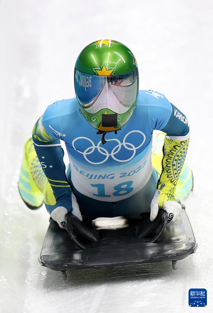 Jaclyn Narracott of Australia competes during the skeleton women heat of Beijing 2022 Winter Olympics at National Sliding Centre in Yanqing District, Beijing, capital of China, Feb. 12, 2022. (Xinhua/He Changshan)
