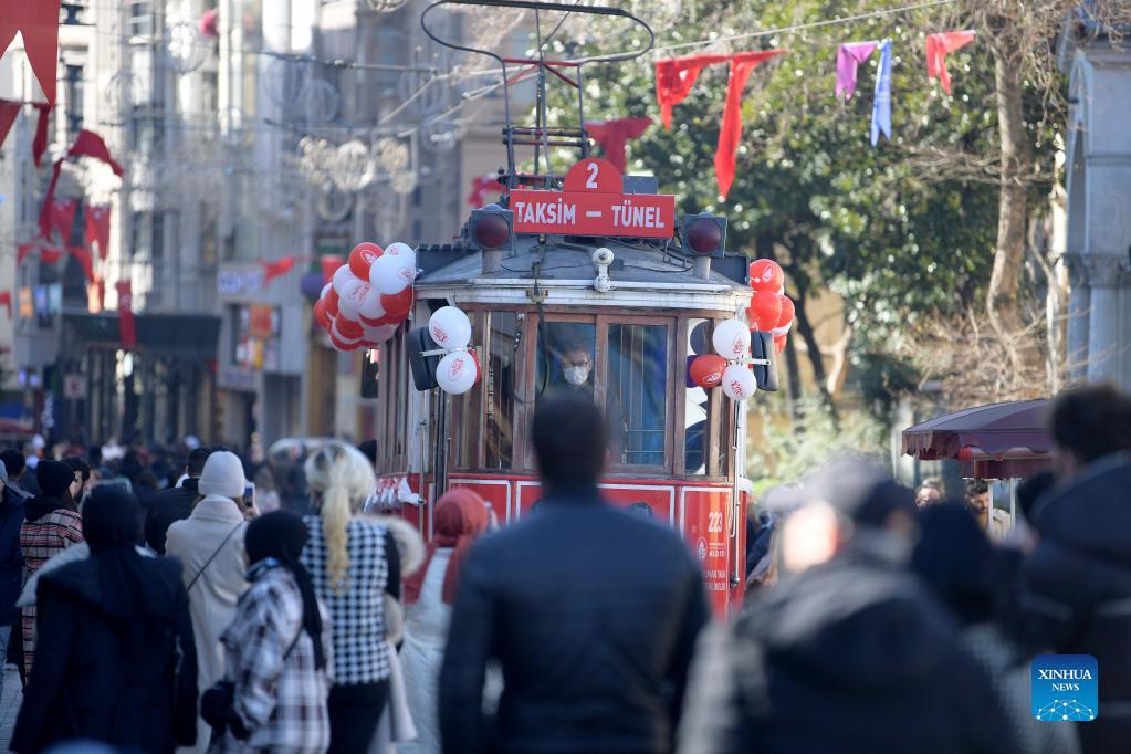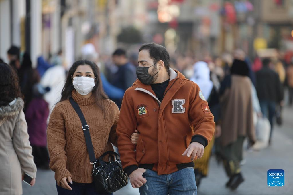 People walk on Taksim Square in Istanbul, Turkey, Feb. 11, 2022. (Xinhua/Shadati)