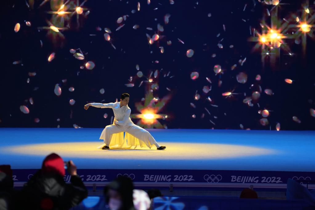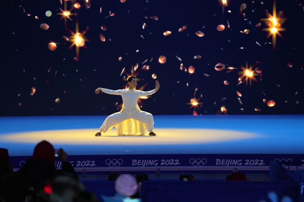 Chinese martial artist Yang Dezhan performs Tai Chi ahead of #Beijing2022 Olympics award ceremony (photos by Ju Huanzong)