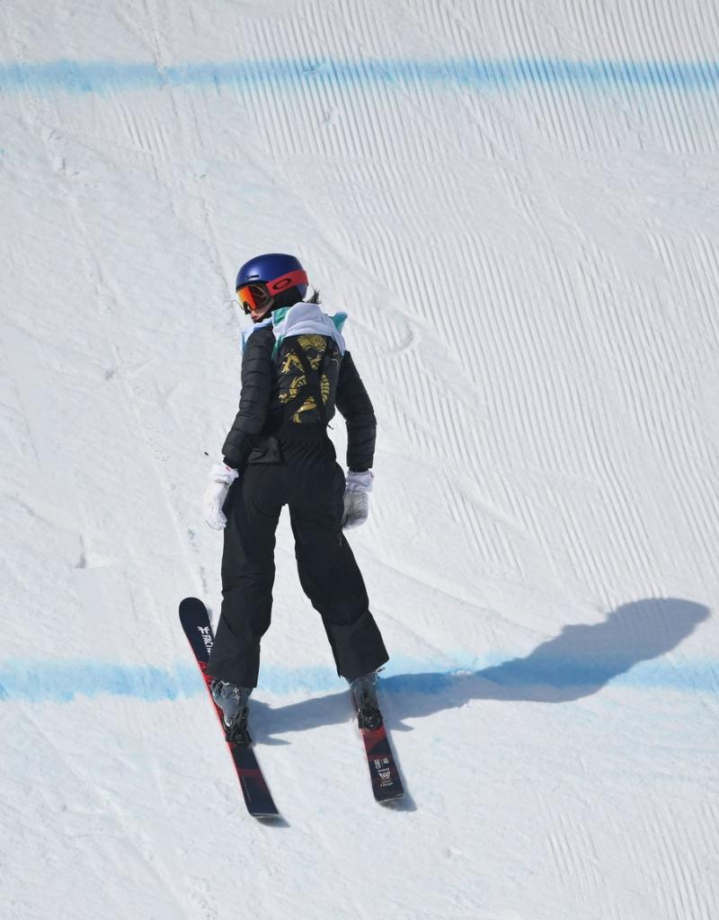 Gu Ailing of China competes during the women's freeski big air qualification at Big Air Shougang in Beijing, capital of China, Feb. 7, 2022. (Xinhua/Xue Yuge)
