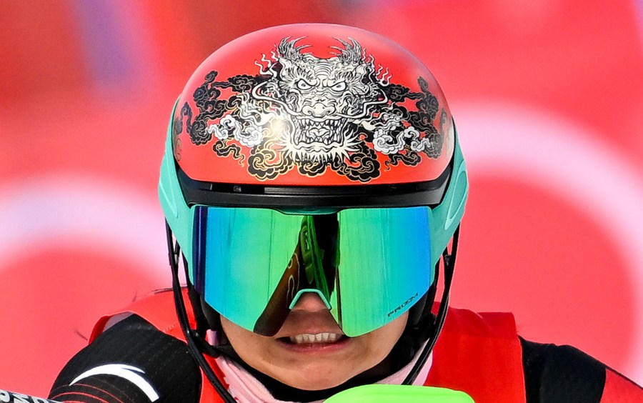 Kong Fanying of China competes during alpine skiing women's slalom at the National Alpine Skiing Centre in Yanqing District, Beijing, capital of China, Feb. 9, 2022. (Xinhua/Chen Yichen)