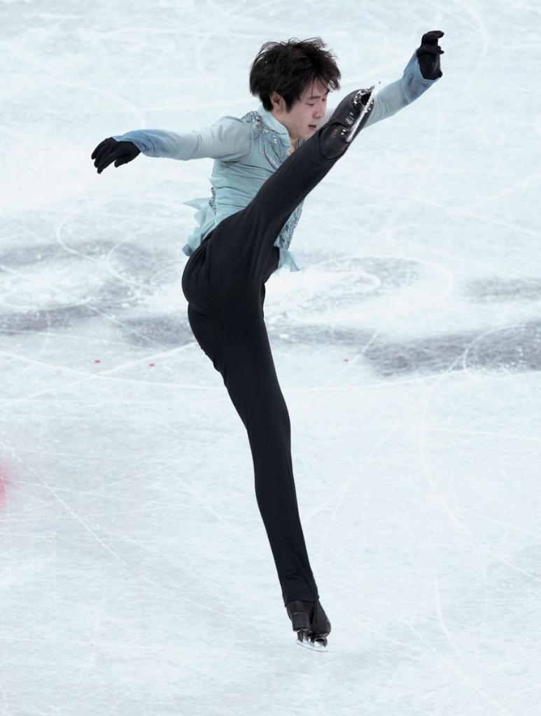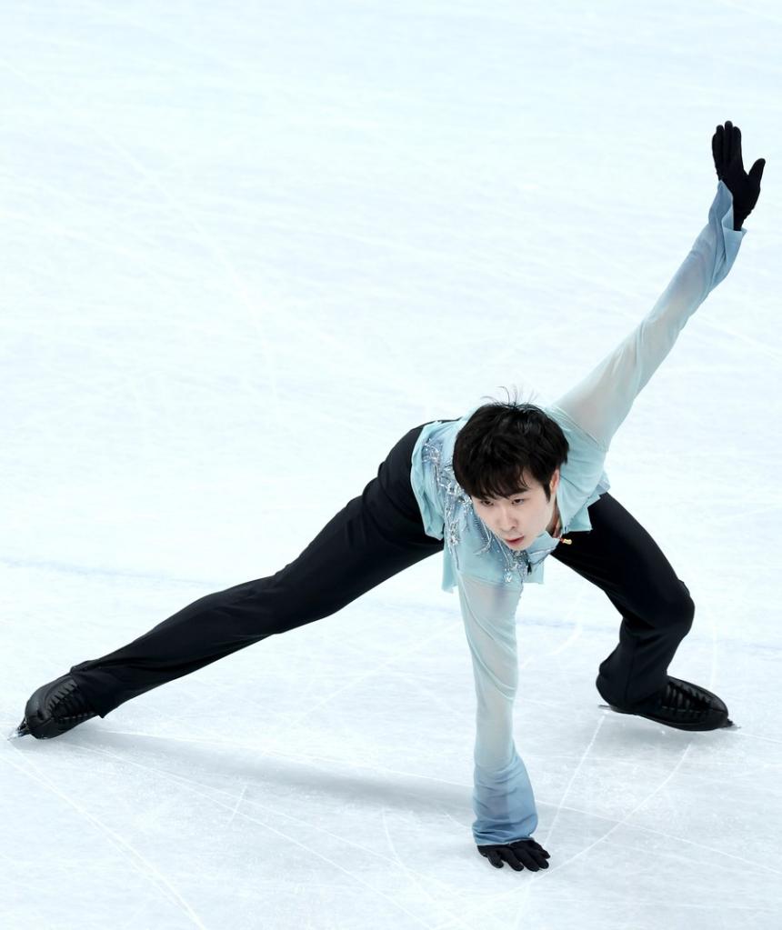 China's Jin Boyang competes during the figure skating team event men single skating short program at Capital Indoor Stadium in Beijing, capital of China, Feb. 4, 2022. (Xinhua/Chen Jianli)