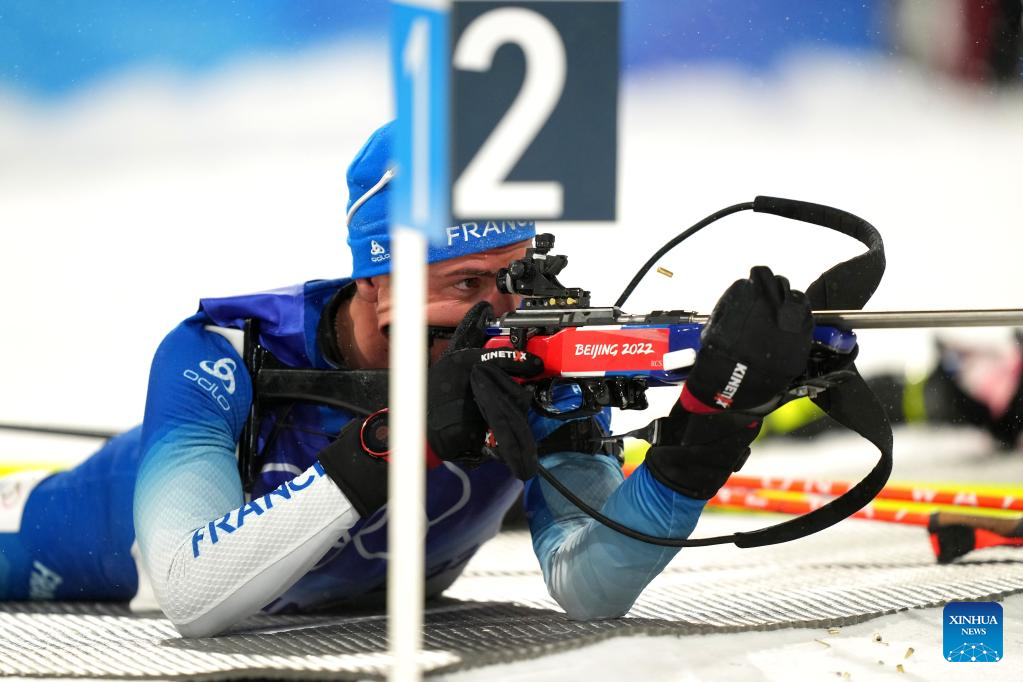 CHONGLI, Zhangjiakou, Feb. 13 (Xinhua) -- France's Quentin Fillon Maillet accomplished his goal of winning a second individual gold medal by taking the men's 12.5km pursuit biathlon title in 39 minutes and 7.5 seconds at Beijing 2022 here on Sunday.
