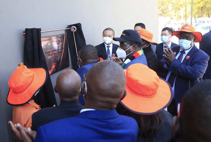 Zimbabwean President Emmerson Mnangagwa launches the National Mobile Broadband project in Harare, Zimbabwe, on Sept. 20, 2021. The project, which is now in the third phase, is a partnership between Chinese ICT giant Huawei, and Zimbabwe's second-largest telecommunications provider NetOne. (Photo by Shaun Jusa/Xinhua)