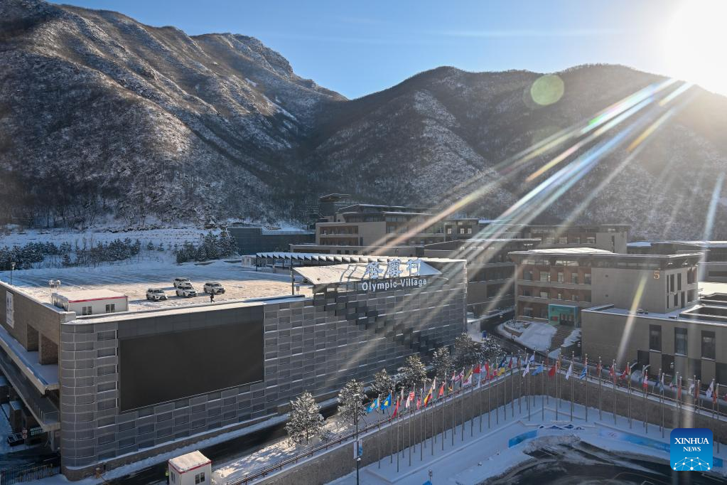 Photo taken on Feb. 14, 2022 shows the Yanqing Olympic Village after snow in Yanqing District, capital of Beijing, China. (Xinhua/Chen Yichen)