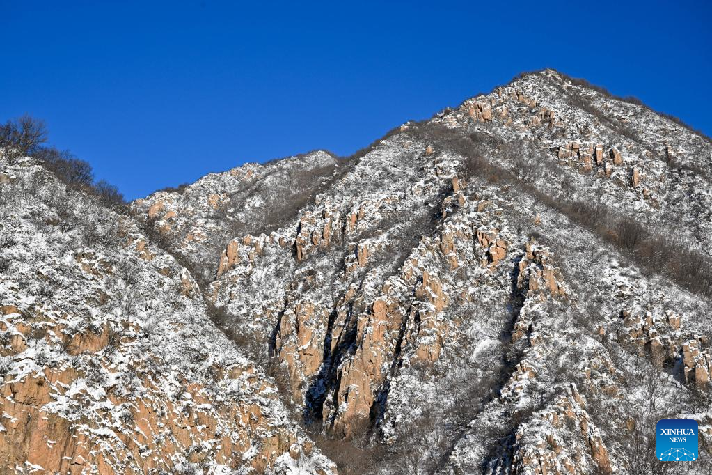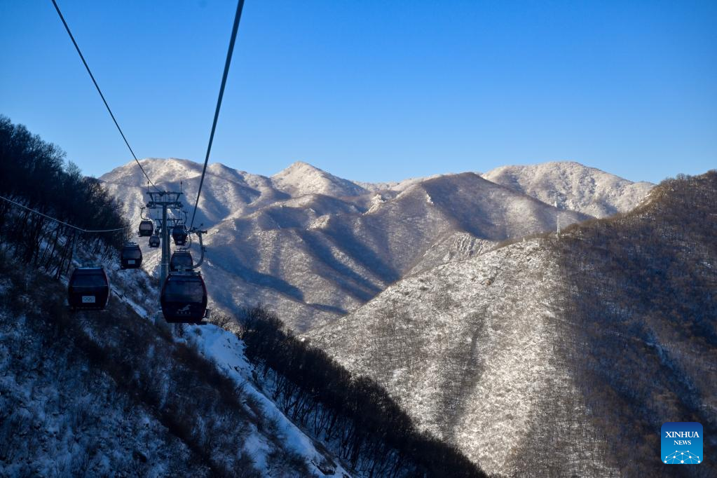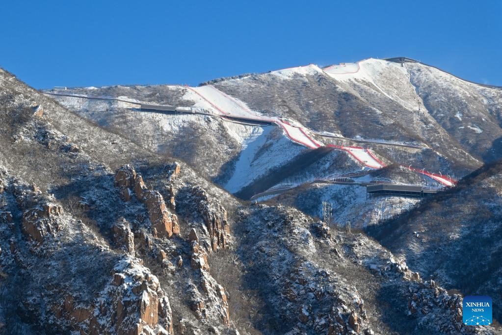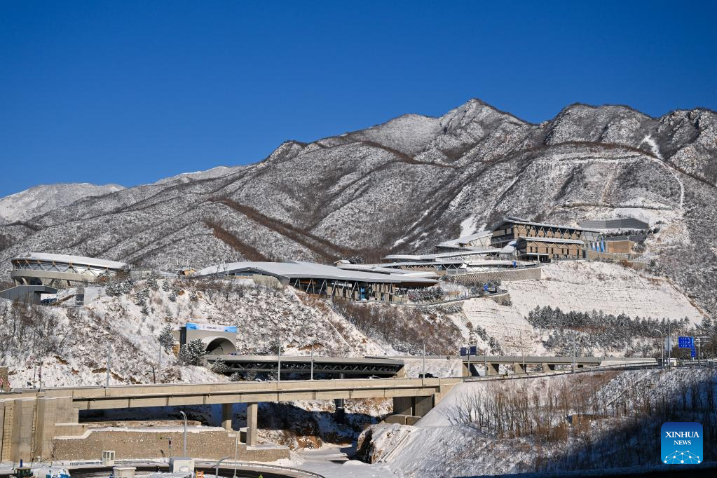 Photo taken on Feb. 14, 2022 shows mountains covered by snow near the National Sliding Center in Yanqing District, capital of Beijing, China. (Xinhua/Chen Yichen)