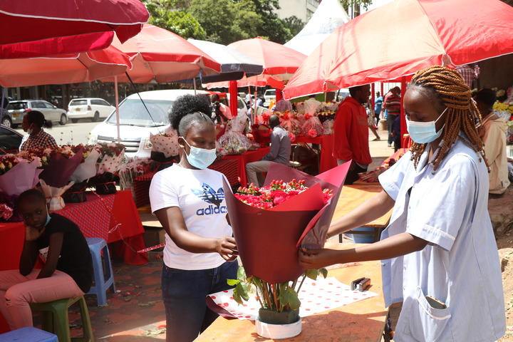 "Generally on such a day, a single stem of red rose will go for about 200 shillings (about 1.75 U.S. dollars) while a bouquet ranges between 13.19 and 30.79 dollars. I charge an additional fee for deliveries depending on the recipient's destination," said the adept florist.
