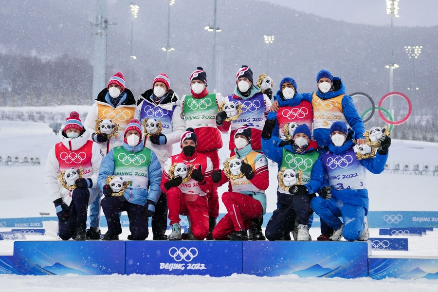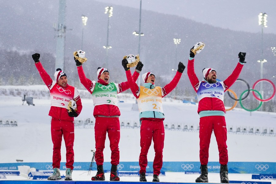 BEIJING, Feb. 14 (Xinhua) -- The Russian Olympic Committee (ROC) claimed the gold medal of the men's cross-country skiing 4x10km relay at Beijing 2022 here on Sunday.