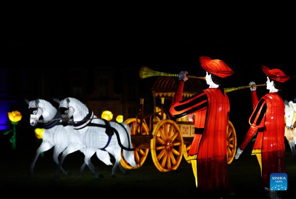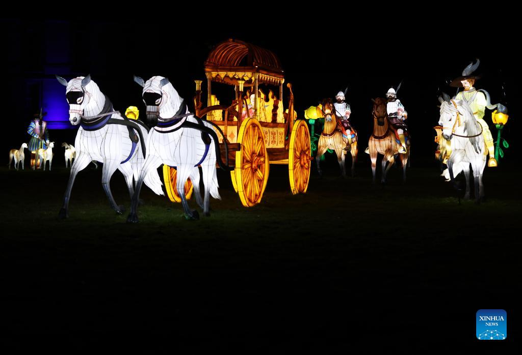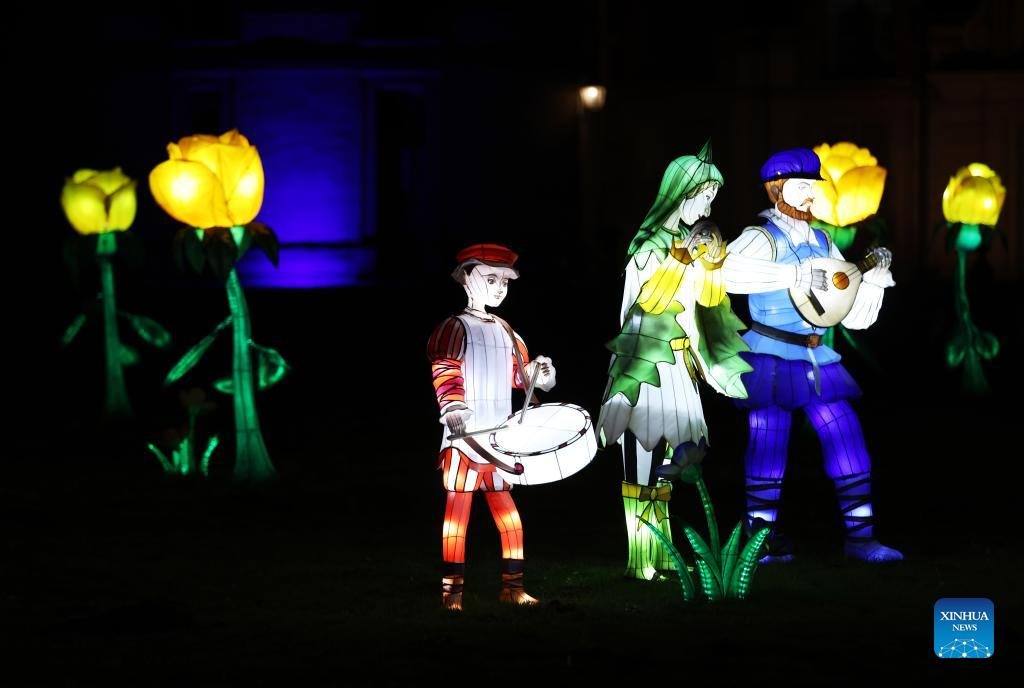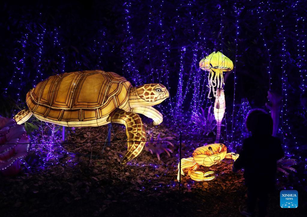 Illuminated sculptures are on display during a light festival at Thoiry zoo near Paris, France, Feb. 13, 2022. The festival runs till March 6, 2022. (Xinhua/Gao Jing)