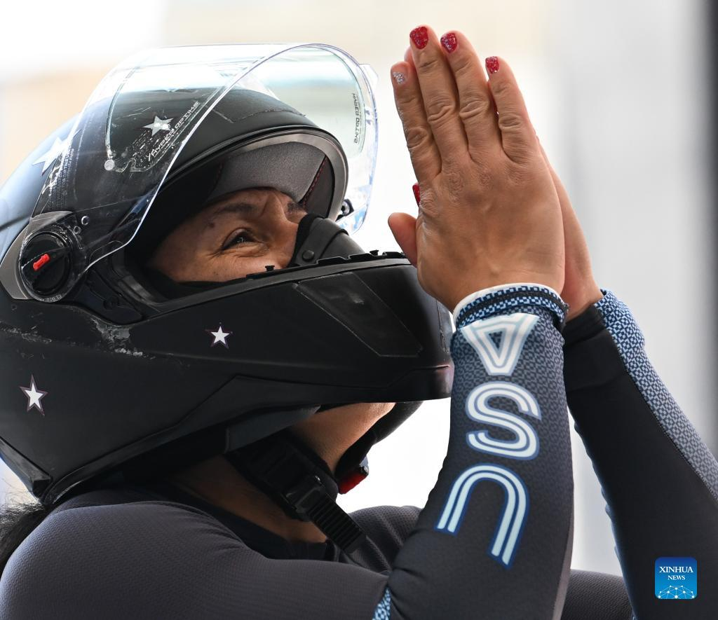 YANQING, Beijing, Feb. 14 (Xinhua) -- Kaillie Humphries of the United States broke Germany's stranglehold on the sliding sports at the Beijing Olympic Winter games on Monday as she won gold of the inaugural women's monobob event.