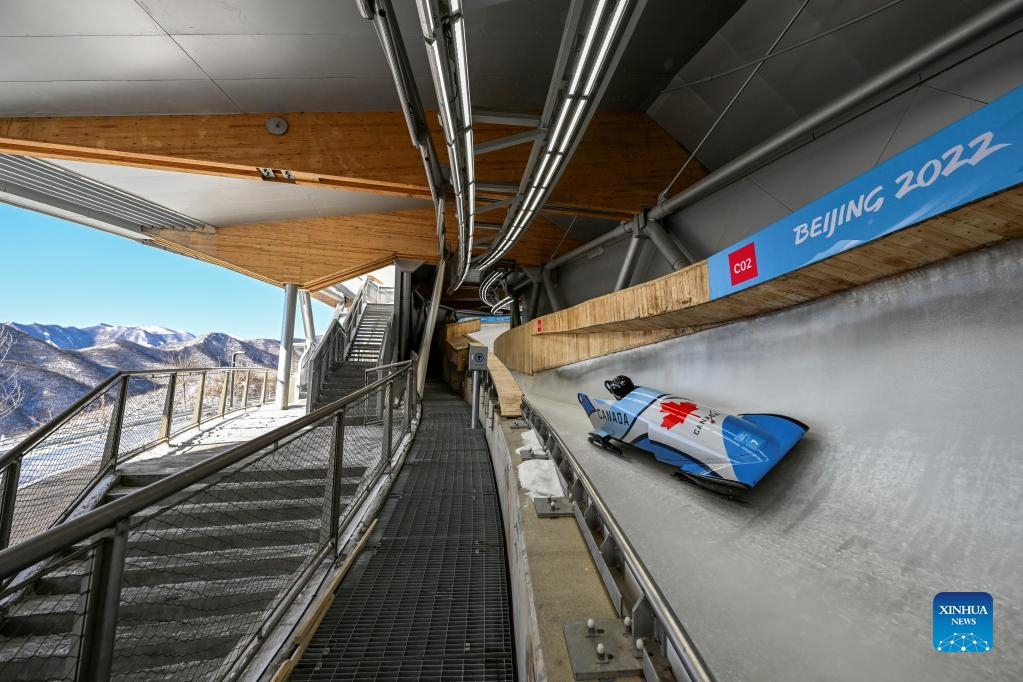 Christine de Bruin of Canada competes during the bobsleigh women's monobob competition of Beijing 2022 Winter Olympics at National Sliding Centre in Yanqing District, Beijing, capital of China, Feb. 14, 2022. (Xinhua/He Changshan)