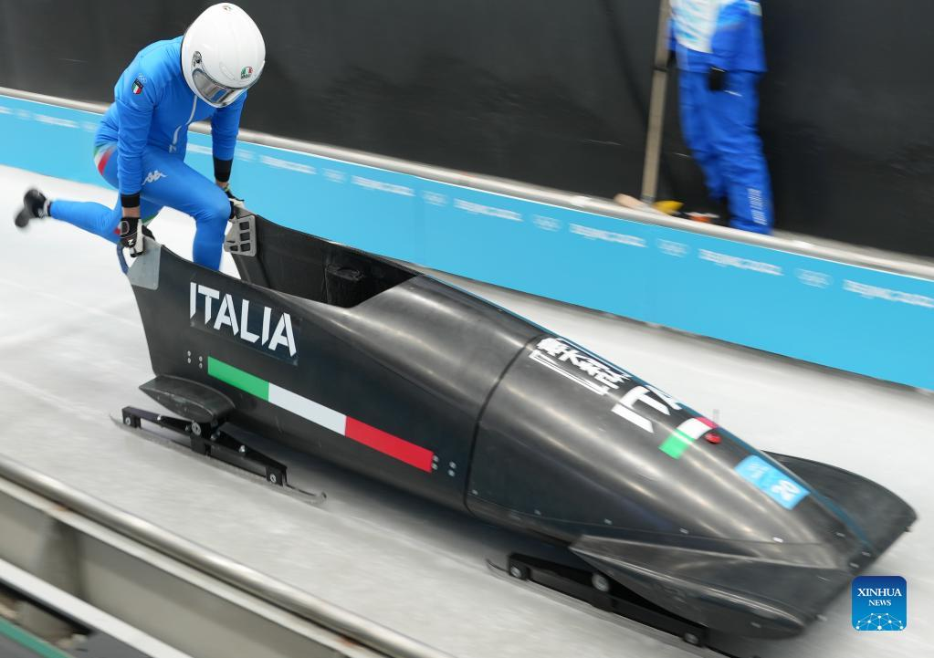 Giada Andreutti of Italy competes during the bobsleigh women's monobob competition of Beijing 2022 Winter Olympics at National Sliding Centre in Yanqing District, Beijing, capital of China, Feb. 14, 2022. (Xinhua/Sun Fei)