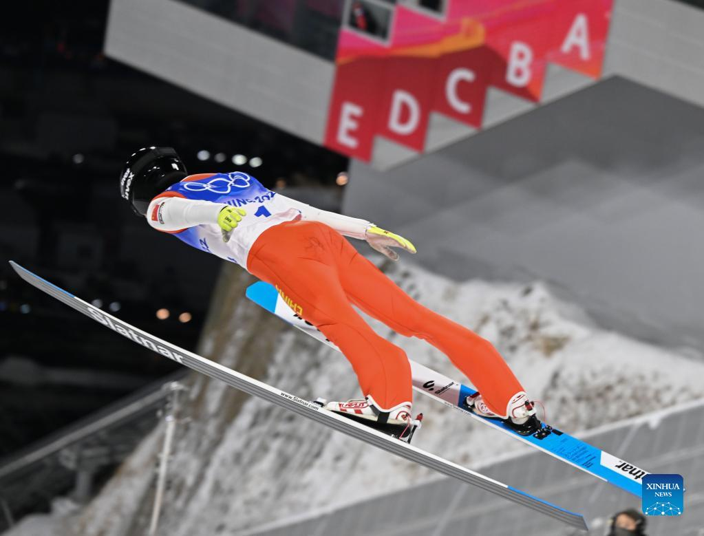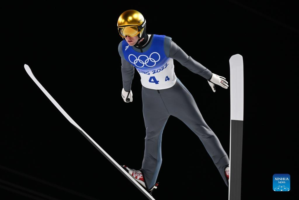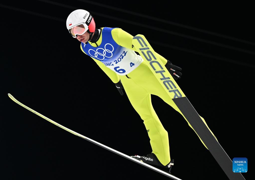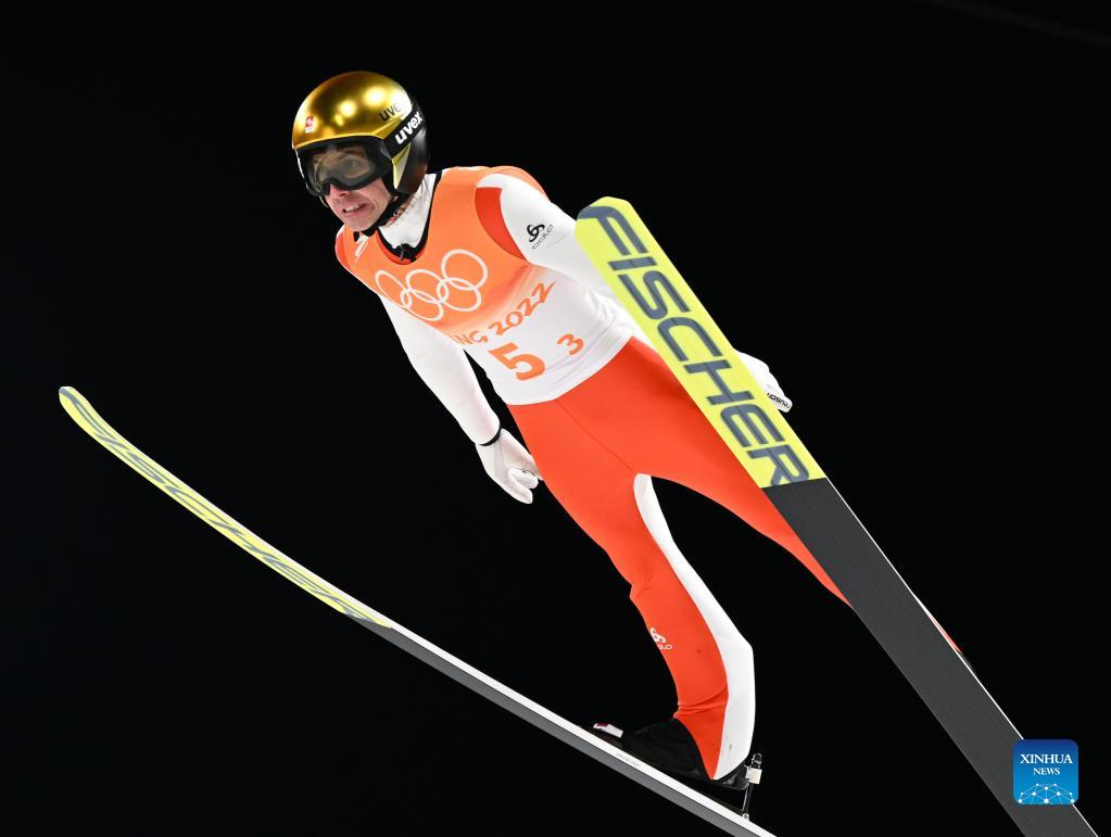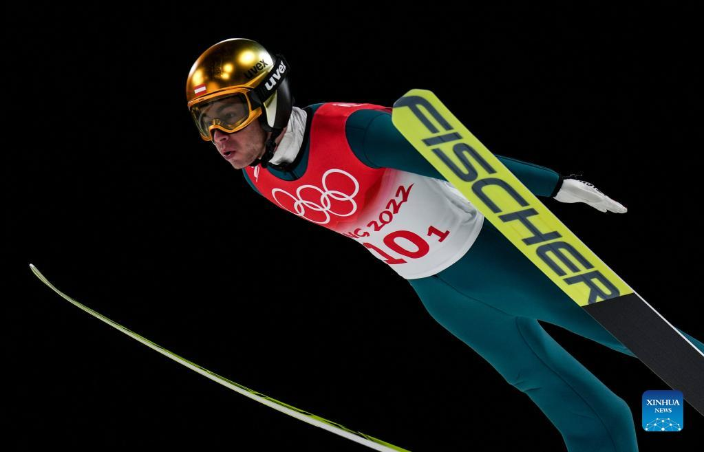 Kamil Stoch of Poland competes during ski jumping men's team at the National Ski Jumping Centre in Zhangjiakou, north China's Hebei Province, Feb. 14, 2022. (Xinhua/Feng Kaihua)