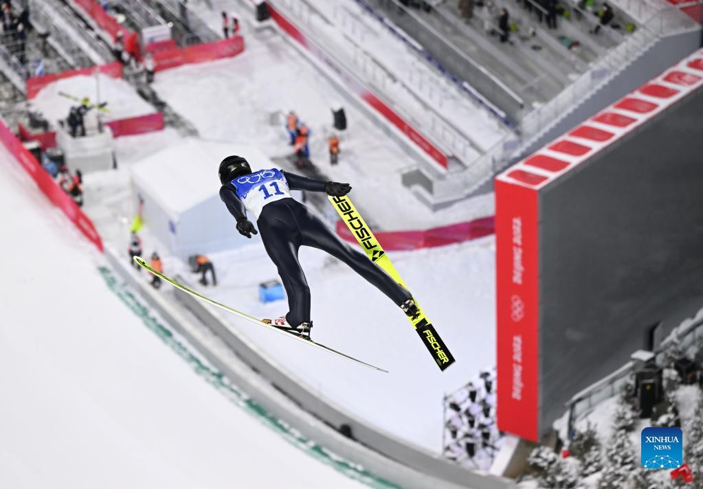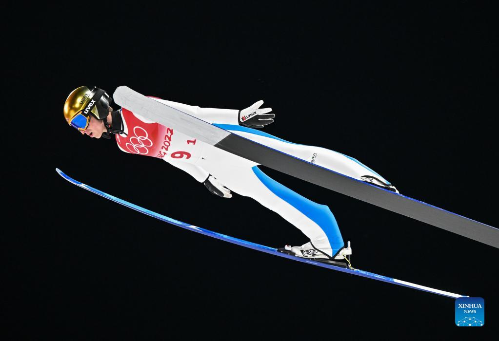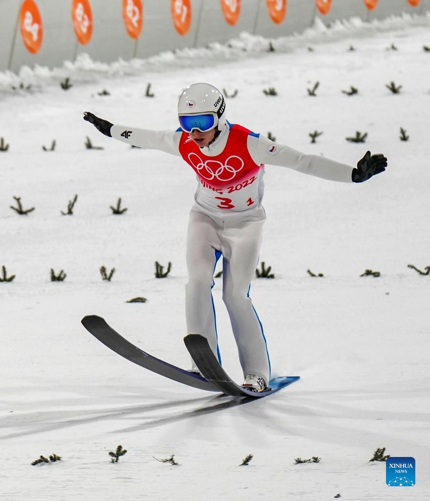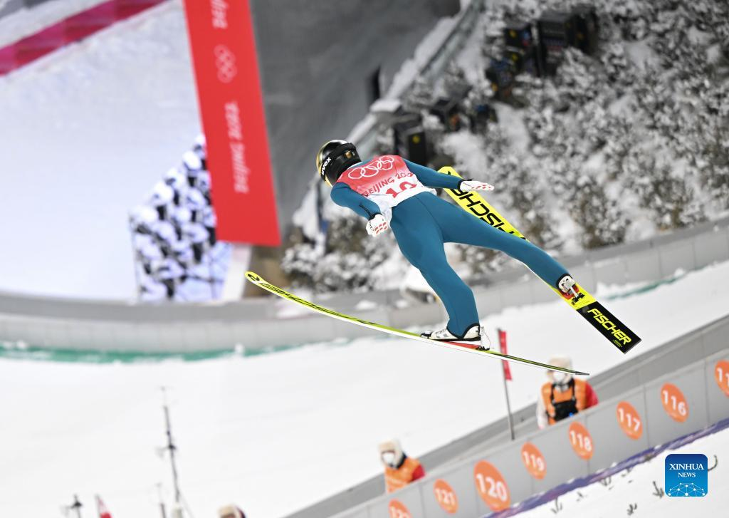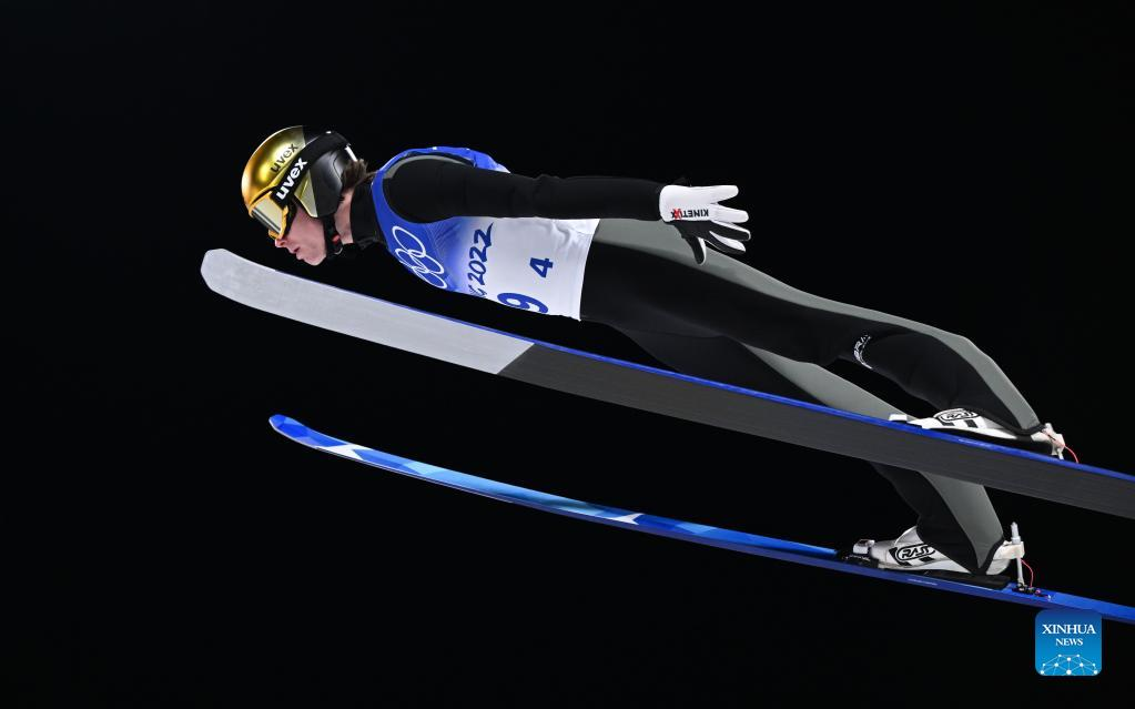 Kamil Stoch of Poland competes during ski jumping men's team at the National Ski Jumping Centre in Zhangjiakou, north China's Hebei Province, Feb. 14, 2022. (Xinhua/Feng Kaihua)