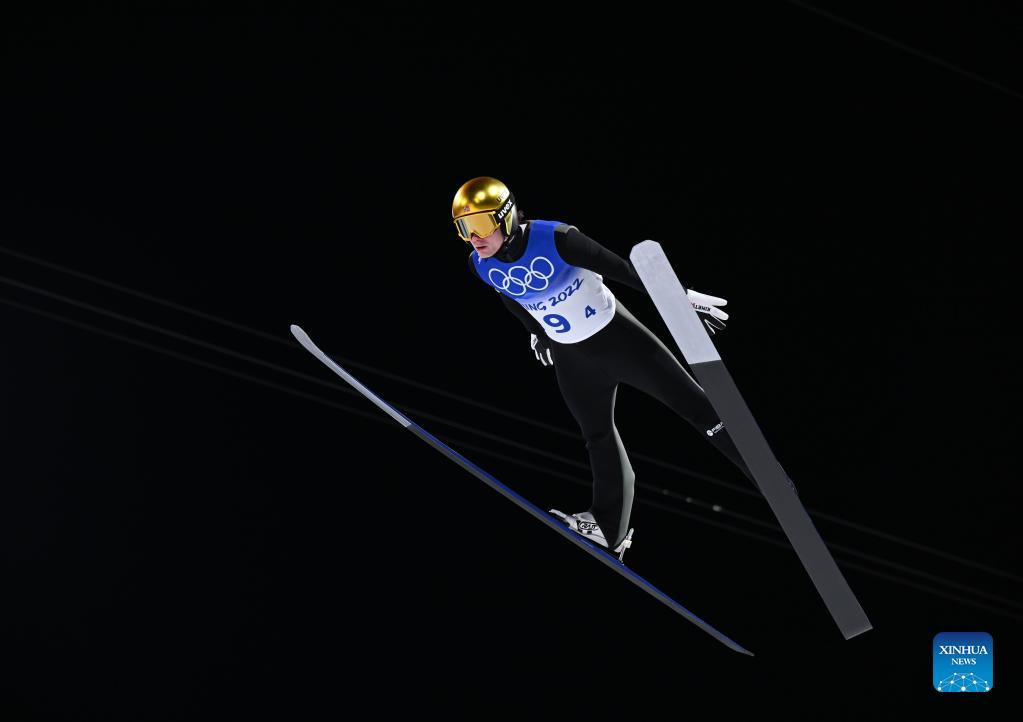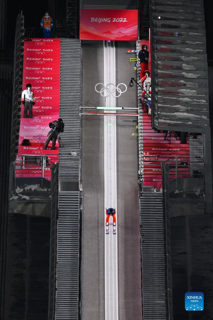 Halvor Egner Granerud of Norway competes during ski jumping men's team at the National Ski Jumping Centre in Zhangjiakou, north China's Hebei Province, Feb. 14, 2022. (Xinhua/Zhu Zheng)