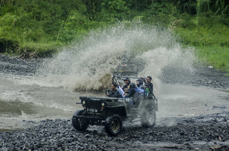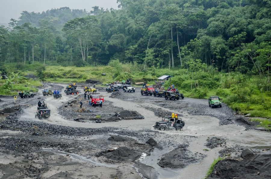 JAKARTA, Feb. 14 (Xinhua) -- Wondering what to do in Indonesia? Try a jeep lava tour near Mount Merapi in Yogyakarta. It is a good way to get up close to the most active volcano in Indonesia.