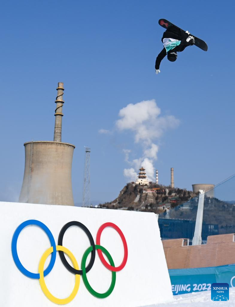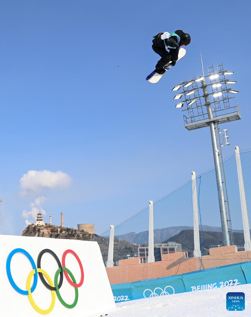 Zoi Sadowski Synnott of New Zealand competes during the women's snowboard big air final of Beijing 2022 Winter Olympics at Big Air Shougang in Beijing, capital of China, Feb. 15, 2022. (Xinhua/Huang Zongzhi)