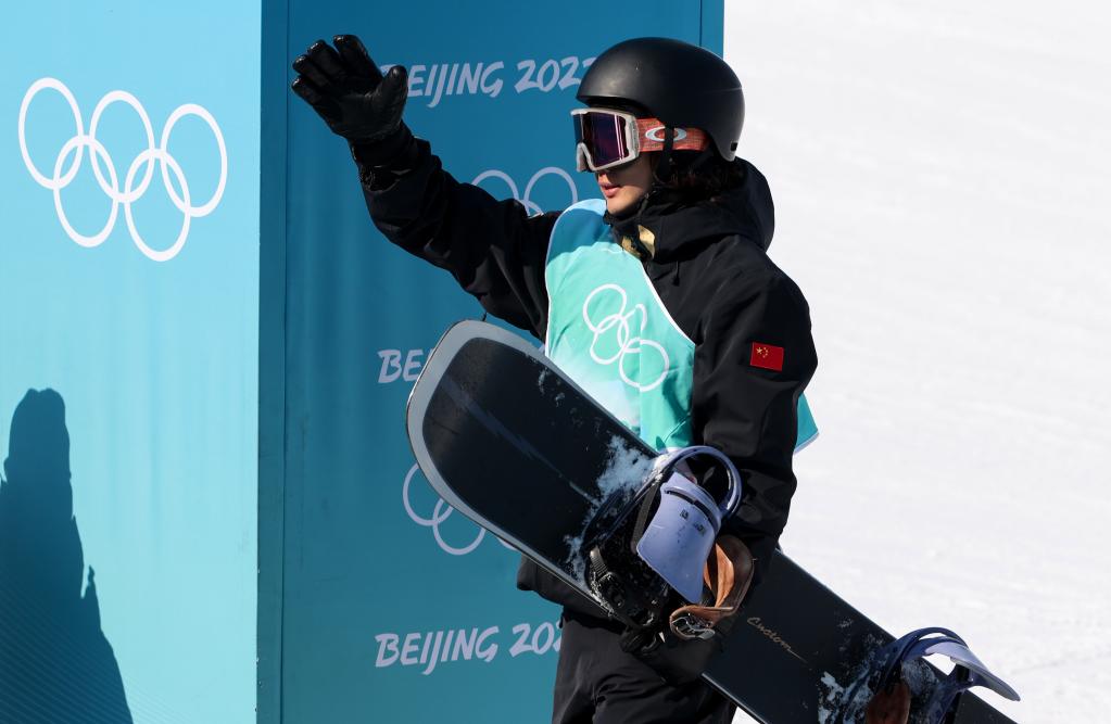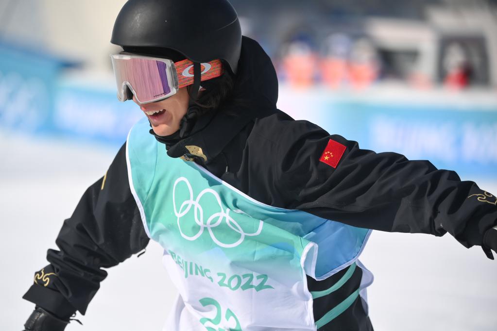 Su Yiming of China reacts during the men's snowboard big air final of Beijing 2022 Winter Olympics at Big Air Shougang in Beijing, capital of China, Feb. 15, 2022. (Xinhua/Xue Yuge)